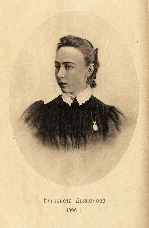 Елизавета Дьяконова была самой старшей из пяти детей в небогатой купеческой семье в Нерехте — уездном городке (тогда в нем жило не больше трех тысяч человек) на примерно равном расстоянии от Ярославля, Костромы и Иваново-Вознесенска. Отец семейства умер в 1887 году, когда Лизе было 13 лет, после продолжавшегося четыре года психического расстройства. После этого семья переехала в Ярославль, где Лизу устроили в женскую гимназию при Сиротском доме, которую она окончила в 1891 году с серебряной медалью. Лиза жаждет учиться дальше, поступить на «Высшие женские курсы», однако мать, деспотичная и своевольная женщина, отказывается дать ей на это необходимое согласие, поэтому Лиза долгие четыре года вынуждена ждать своего совершеннолетия — то есть дня, когда ей исполнится 21 год.