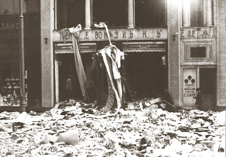 В коридор к нам зашел Онисим Борисович и рассказал, что молодой человек с разорванной щекой — студент и брат раненого, тоже студента. Оба были у обедни у Старого Пимена (что против нас). Когда священник стал читать «Воззвание» о расправе с ж*дами и интеллигенцией, то Володя (или Коля — не помню) сказал, правда, очень громко, на всю церковь: «Стыдно, батюшка, говорить такие слова, да еще с амвона!» Священник на это провозгласил — тоже на всю церковь: «Не знаешь, сыне, что творишь!» А в ответ на это раздались крики: «Рвите его в клочья!»