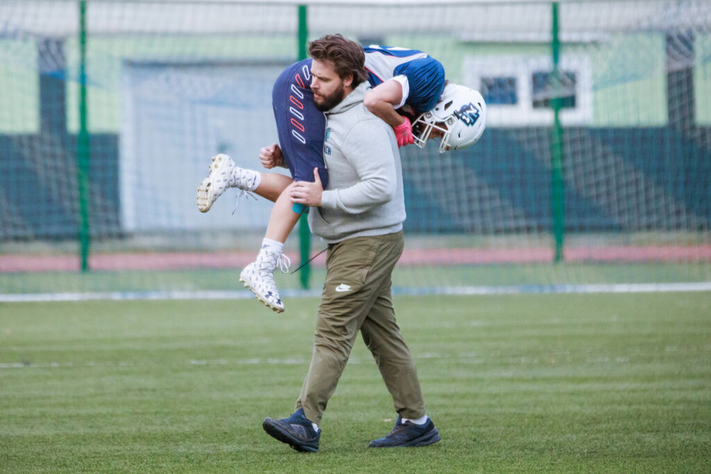 Тренировка «Могучих уточек» в Воронеже.В Воронеже девушки не смогли набрать полный состав, поэтому они тренируются вместе с мужской командой «Могучие утки» и ездят играть легионерами за московские команды. Фото: Кристина Бражникова | Гласная Воронежские девушки в раздевалке перед тренировкой на сборах.Раз в год санкт-петербургская команда «Валькирии» старается организовать сборы игроков со всей страны, куда приглашают тренеров национальной женской сборной США. Фото: Кристина Бражникова | ГласнаяКоординатор защиты американской женской сборной по американскому футболу Джеф Грайбаш (в центре) тренирует девушек на сборах в Санкт-Петербурге. Фото: Кристина Бражникова | Гласная Девушка из команды Sechenov Phoenix разминается перед игрой в Москве. Фото: Кристина Бражникова | ГласнаяТаня помогает Люде затейпировать колено, чтобы снизить риск травмы во время игры. Фото: Кристина Бражникова | ГласнаяАлла помогает Лизе заплести волосы перед игрой.Команды приходят на поле минимум за два часа до начала игры, чтобы разметить поле, экипироваться и размяться. Фото: Кристина Бражникова | ГласнаяАлевтина и ее команда «Единороги» перед матчем. »Единороги» базируются на основе мужской команды «United» и делят с ними экипировку в целях экономии затрат. Если мужчины начали играть в американский футбол в России в конце 1980х, то первая женская команда появилась только в 2011 году в Санкт-Петербурге. Фото: Кристина Бражникова | ГласнаяМатч между «Стрекозами» и «Единорогами».За год девушкам удается сыграть всего 6-7 матчей. Все игры организуются за свой счет. Фото: Кристина Бражникова | Гласная Лиза отдыхает на бровке поля во время матча.Большинству команд не удается укомплектовать полный состав, поэтому опытным игрокам приходится выходить на поле на разных позициях, что физически дается тяжело. Фото: Кристина Бражникова | ГласнаяТренер «Единорогов» дует на травмированное плечо игрока, так как дежурившая на матче бригада медиков в этот раз приехала без «заморозки» (местного обезболивающего).Фото: Кристина Бражникова | Гласная «Единороги» идут на стадион после обсуждения игровой стратегии с легионерками из Воронежа в парке. Фото: Кристина Бражникова | Гласная В Воронеже тренировки обычно проходят поздно вечером, потому что в это время аренда поля дешевле. Фото: Кристина Бражникова | Гласная«Сирены» участвовали в московской женской лиге только в первый год под своим флагом, после они переквалифицировались во флаг-футбол, а отдельные участницы стали выступать на чемпионате легионерами в других командах. Фото: Кристина Бражникова | Гласная Настя перед игрой против ее бывшей команды «Единороги». Фото: Кристина Бражникова | ГласнаяЗахват игрока с мячом. Фото: Кристина Бражникова | Гласная«Единороги» атакуют «Стрекоз». Фото: Кристина Бражникова | Гласная«Единороги» обсуждают с тренером тактику игры во время перерыва. Фото: Кристина Бражникова | ГласнаяДаша начала играть в американский футбол в Воронеже, но теперь переехала в Москву по работе и перешла из «Могучих уток» в «Единороги». Фото: Кристина Бражникова | Гласная Тренер помогает уйти с поля травмированному игроку. Фото: Кристина Бражникова | Гласная «Единороги» после выигранного у «Стрекоз» матча. В сезоне 2020 они заняли второе место в московской лиге. Фото: Кристина Бражникова | Гласная