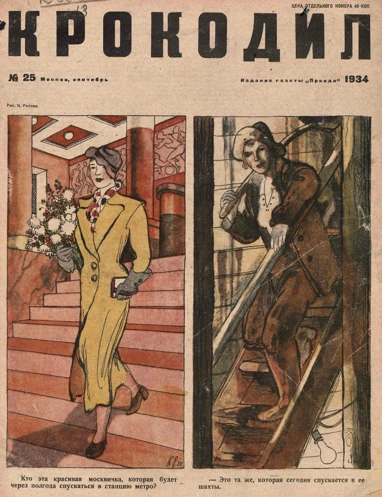 *Первая линия Московского метрополитена открылась для пассажиров в мае 1935 года — через восемь месяцев после публикации этой карикатуры.
