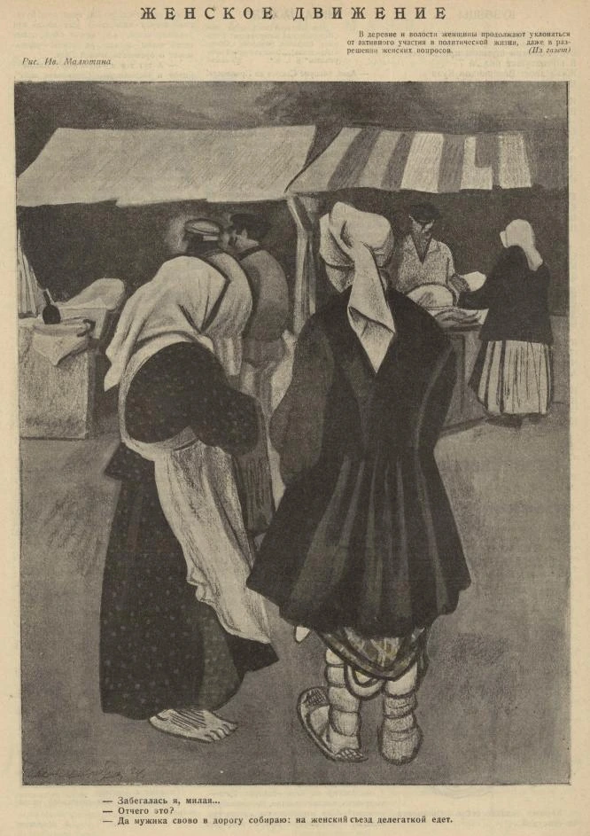 В деревне и волости женщины продолжают уклоняться от активного участия в политической жизни, даже в разрешении женских вопросов. (Из газет.)