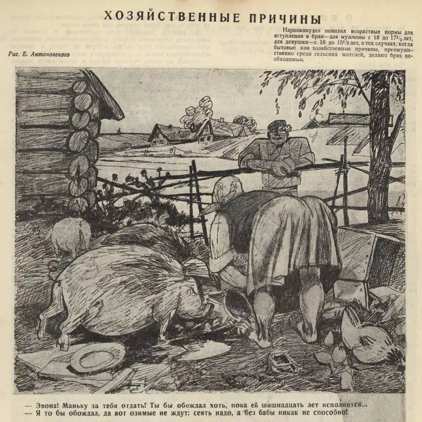 *До 1926 года минимальный брачный возраст в РСФСР составлял 16 лет для женщин и 18 лет для мужчин (в исключительных случаях 15,5 и 17,5 соответственно); в 1926 году был введен единый брачный возраст — 18 лет.