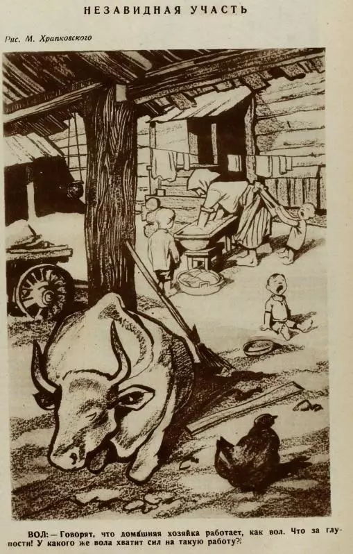 Рис. А. Топикова. «Крокодил», 1929, № 47.Курица — не птица, баба — не человек. (Старая пословица.)