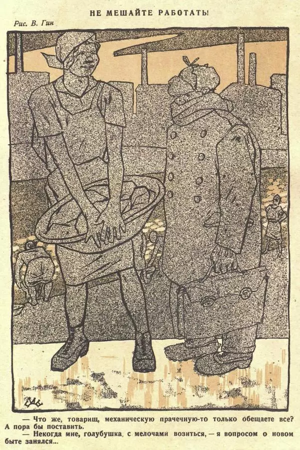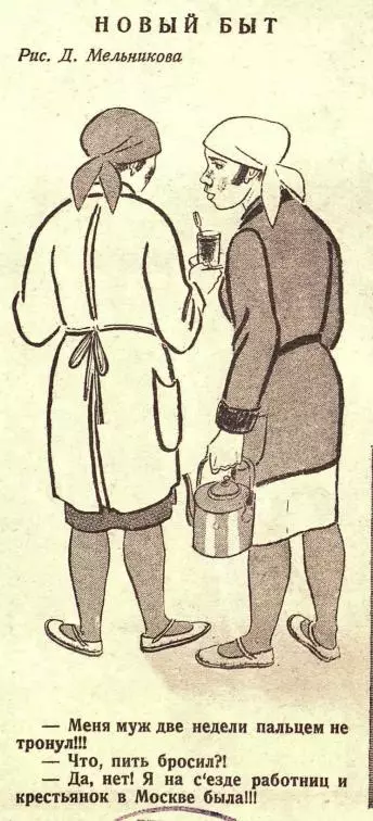 — Да мужика свово в дорогу собираю: на женский съезд делегаткой едет.