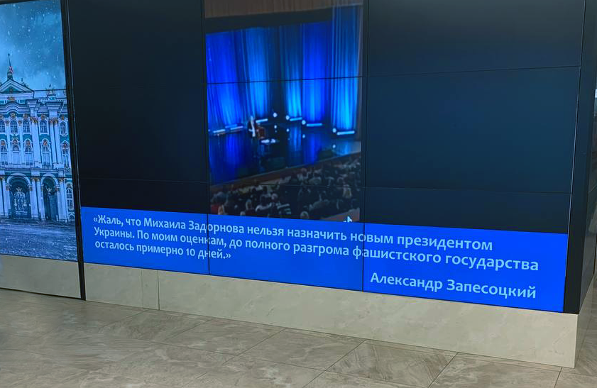 Когда я вышла из аудитории, в коридоре на огромном экране показывали видео с цитатой ректора: «По моим оценкам, до полного разгрома фашистского государства осталось примерно десять дней».