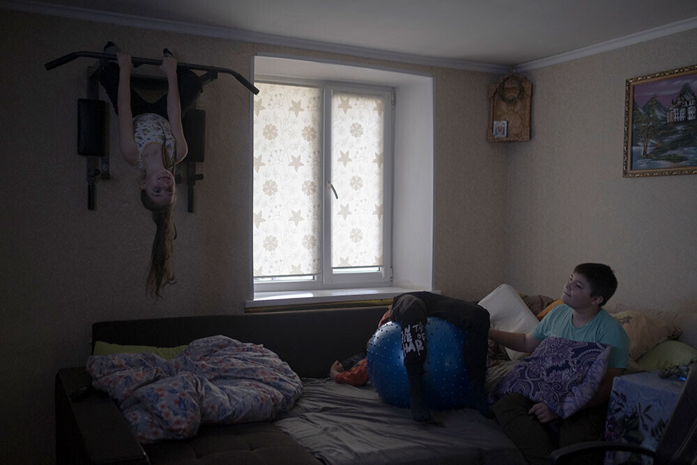 У 38-летней Лены и 35-летнего Георгия, в прошлом владельца небольшого бизнеса по ремонту телефонов в Киеве, пятеро детей. Когда город начали бомбить, Георгий был на работе. Лена с детьми спряталась в бомбоубежище, но это место напугало их больше, чем звуки взрывов на улице. Больше семья туда не возвращалась.