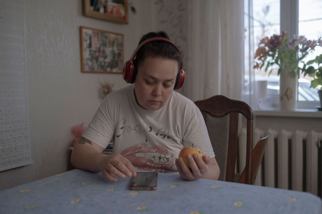 Женщина смотрит в телефон — там очередные новости с жертвами и взрывами. «И так каждый день проходит, в надежде на какой-то просвет, но его не видно пока что. Все хуже и хуже. В телефоне я сижу целыми днями, отвлечься очень сложно, несмотря на то, что Игорь пытается развлекать, чуть ли не танцы с бубном танцует», — говорит Эдита и начинает рыдать.
