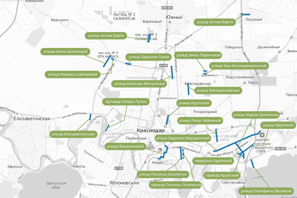 Кстати, изначально нынешний Краснодар был поименован в честь императрицы Екатерины Великой и звался Екатеринодаром. «Петр вывел женщину в свет. Новой роли аккомпанировали топонимы, образованные от женских личных имен», — комментирует Сергей Никитин. Сегодня на карте южного города от Екатерины осталось не так мало: в ее честь названа площадь напротив заксобрания, ее имя носит аэропорт. Еще есть две крохотные улицы — в дачном товариществе и частном секторе. Но сам город имени императрицы не сохранил.