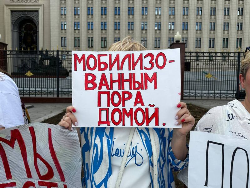 Об этом сообщается в телеграм-канале жены мобилизованного Паулины Сафроновой. Массовый пикет происходит напротив здания Минобороны в Москве. Десятки родственников мобилизованных, среди которых есть дети, требуют встречи с новым министром обороны РФ Андреем Белоусовым.