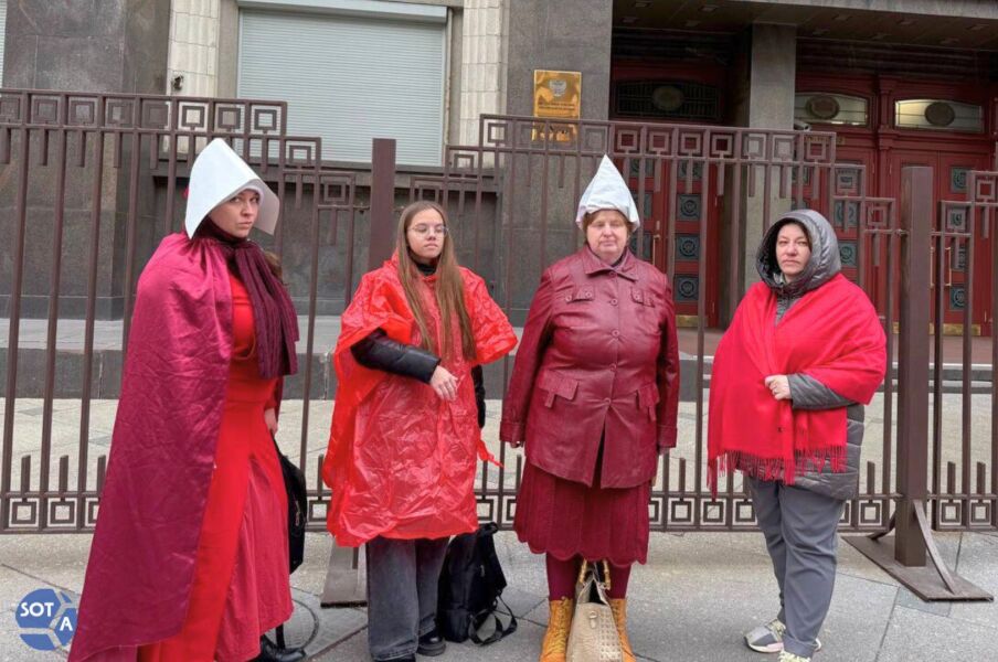 12 ноября на акцию к зданию Государственной Думы в Москве вышли четыре феминистки в красных плащах и белых шляпах, похожих на костюмы, которые носили женщины в романе Маргарет Этвуд «Рассказ служанки», а также в одноименном сериале. Акция была анонсирована феминисткой Татьяной Сухаревой и продлилась около часа, однако позже женщинам пришлось разойтись из-за силовиков: те пригрозили им уголовным делом.