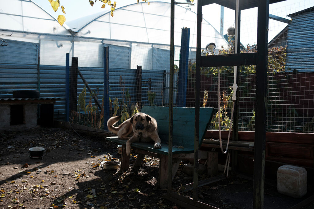 Наталия, хозяйка приюта, передвигается на инвалидной коляске. Приехав, мы не сразу ее находим: связь плохая. Проходим в открытую калитку. Прямо — вход в дом, направо — узкая и длинная пристройка, в которой оказывается кухня. Через ее окна можно заглянуть в прихожую основного здания. Когда-то здесь был коридор из поликарбоната. Его утеплили, чтобы появилось место, где можно собраться всем одновременно, — раньше большой стол поставить было попросту некуда, обедали по очереди. Кухня служит и проходом на задний двор.