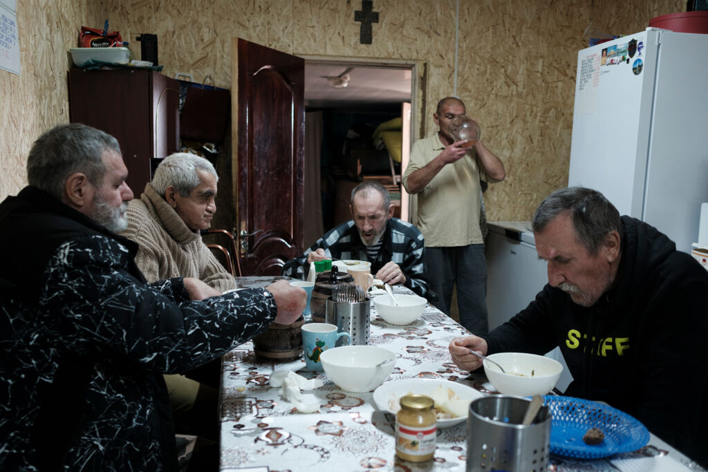 Всего, по его словам, Борис оказывался в колонии семь раз. Он говорит медленно и не совсем внятно, ходит с трудом, на ходунках. Наталия увезла его в приют с автобусной остановки, где он спал и пил на деньги, что ему подавали прохожие.