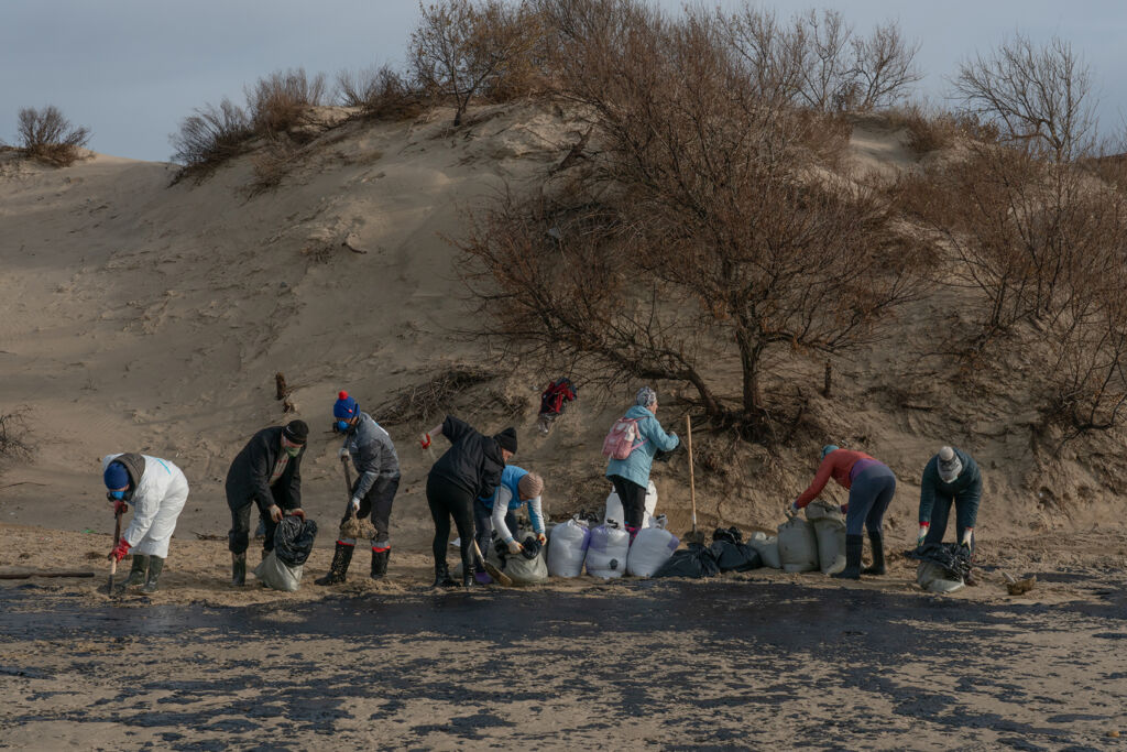 Таисия с сыном, его девушкой и еще одним незнакомым мужчиной остались собирать мазут. Работали почти без перерывов. Поначалу без масок и респираторов — о том, что они необходимы, никто не предупреждал, волонтеры еще не знали, какой именно вид топлива был в танкерах и чем он опасен.