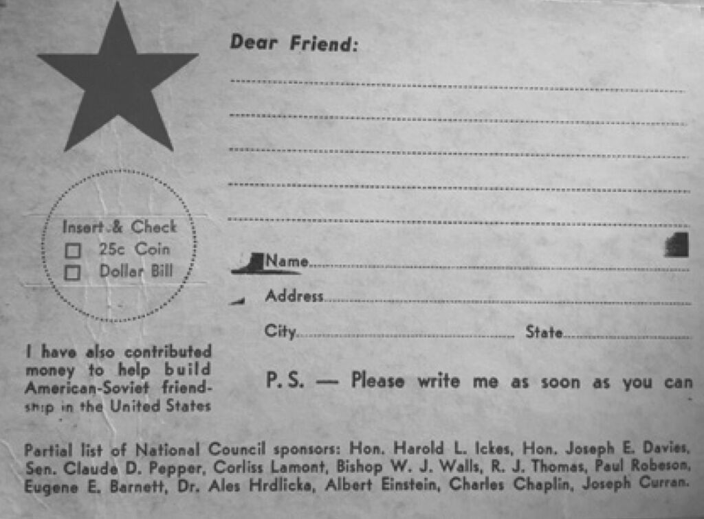 Russia War Relief даже стала печатать специальные почтовые открытки для желающих отправить письмо в Советский Союз. Правда, на них можно было уместить только короткий текст.