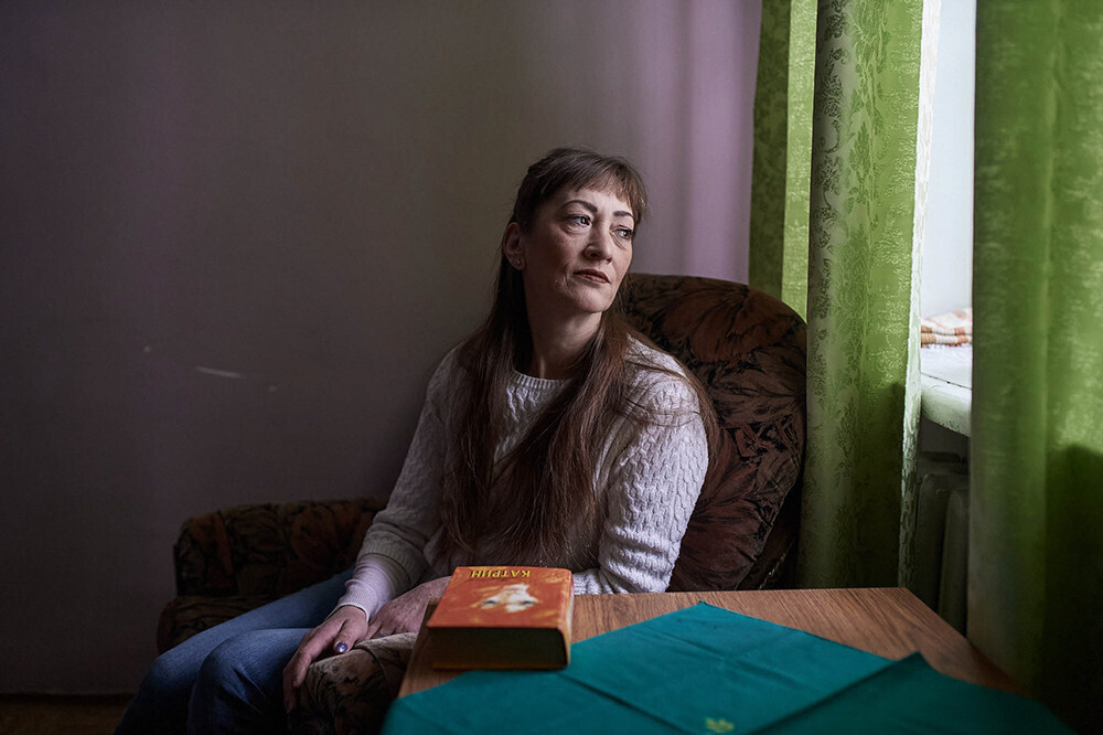 Besides the kitchen, the centre has three rooms, a future conference room, Anna’s office with a sofa and nineties-style “golden” wallpaper, a shower and a toilet. Lena shares a room with Katya, a newcomer: two bunk beds, two armchairs, a coffee table, a wardrobe and a sideboard. Agniya occupies a separate room as Anna’s assistant and the centre’s first settler.